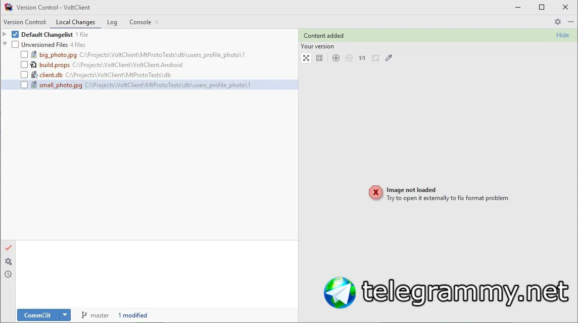Нету там никакой консоли и никакого лога. Ну, на той вкладке, на которой ты делаешь коммит.