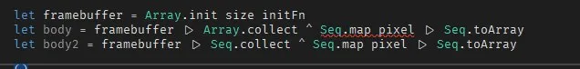 framebuffer |> Array.collect (Array.map pixel)