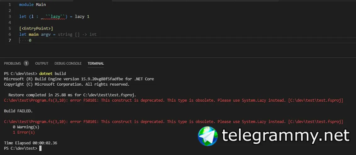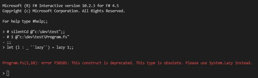 error FS0101: This construct is deprecated. This type is obsolete. Please use System.Lazy instead.