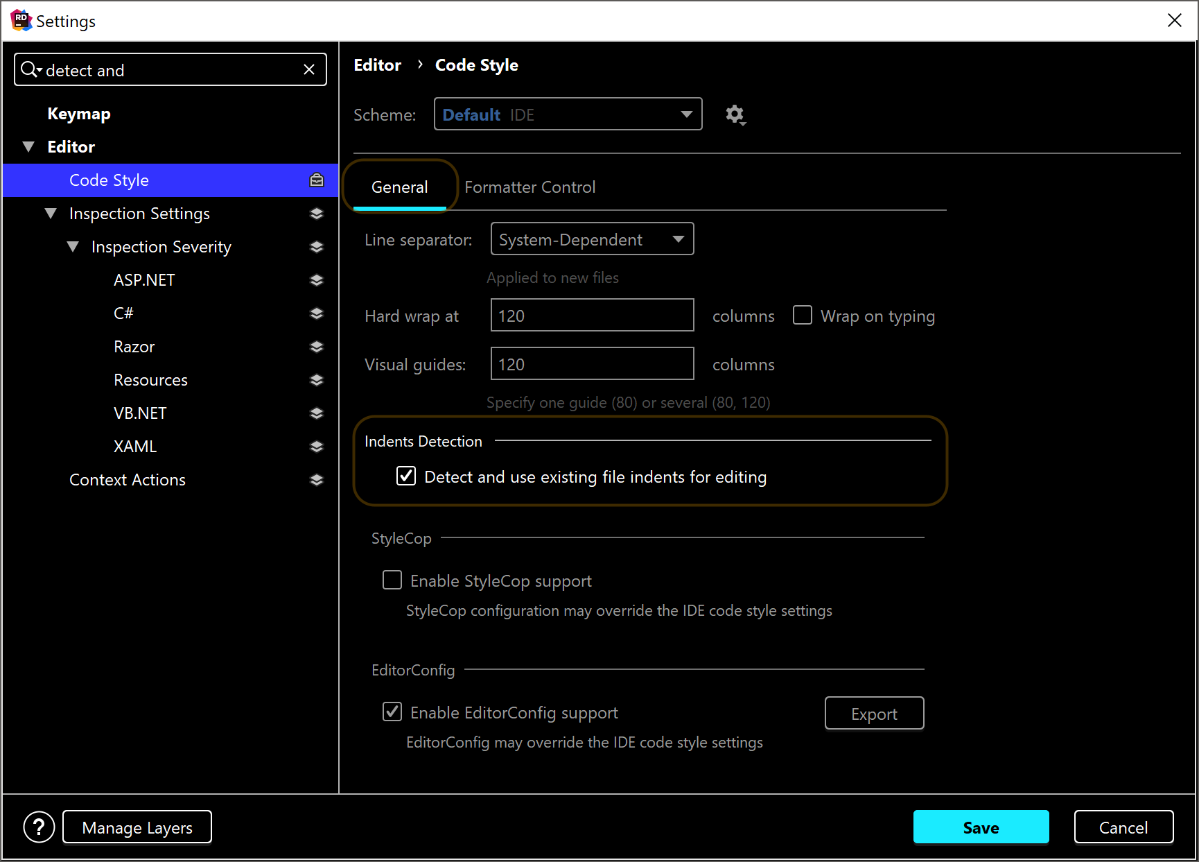 @fvnever В райдере где-нить можно настроить количество отступов индентации?