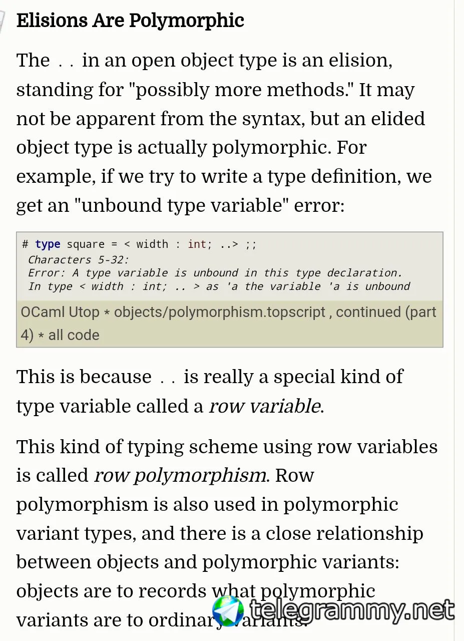 @eglyph а в ocaml row полиморфизм работает только для object? С рекордами я не могу так писать?