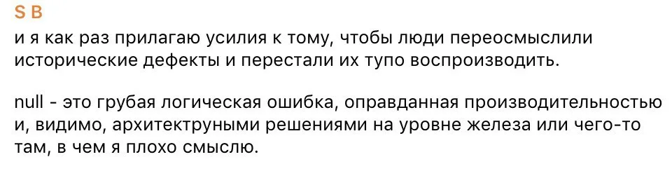 Насколько я вижу, человеку не нравится, что эта функция может вернуть null. Мол, нуллы от лукавого, а лукавый — это нечистый и есть