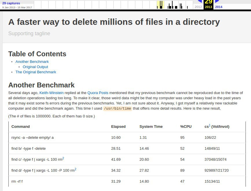 https://web.archive.org/web/20130929001850/http://linuxnote.net/jianingy/en/linux/a-fast-way-to-remove-huge-number-of-files.html