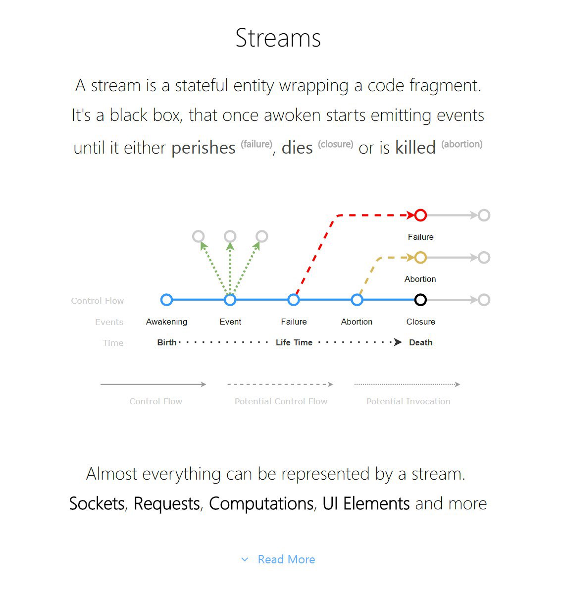 это подход со стримами... позволяет относительно просто описывает довольно сложный асинхронный control flow