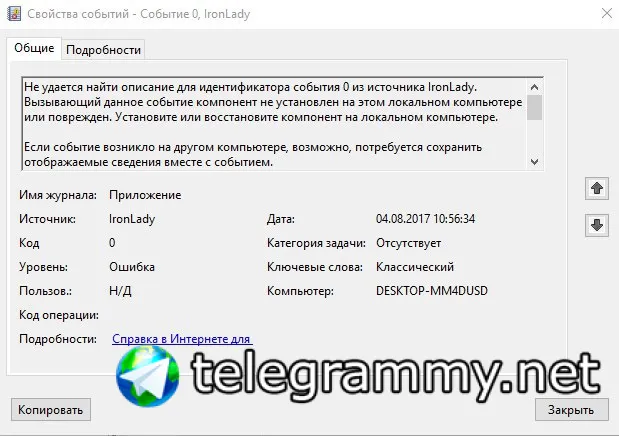 При создании события через eventlog, так же добавляется код, но в Просмотре событий вот такое вот полотно: