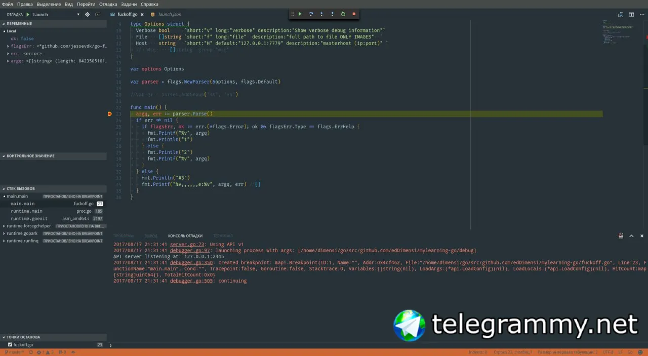 vscode вроде как поддерживает дебаг через delve