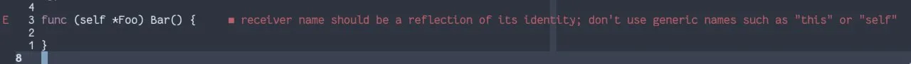 Если, кстати, использовать this в качестве имени, то линтер может поругаться, мол негоже в го такие вещи писать