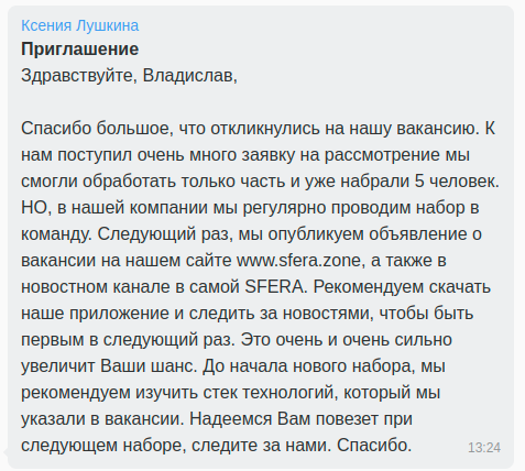 Пожалуйста, напишите, готовы ли вы обсуждать вакансию подробнее! Для быстрой связи пишите в телеграм: @slanakrd Светлана