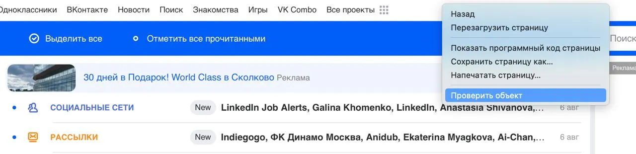 Подскажите плез, мне надо на маке открыть вэб инспектора в почте мэйл