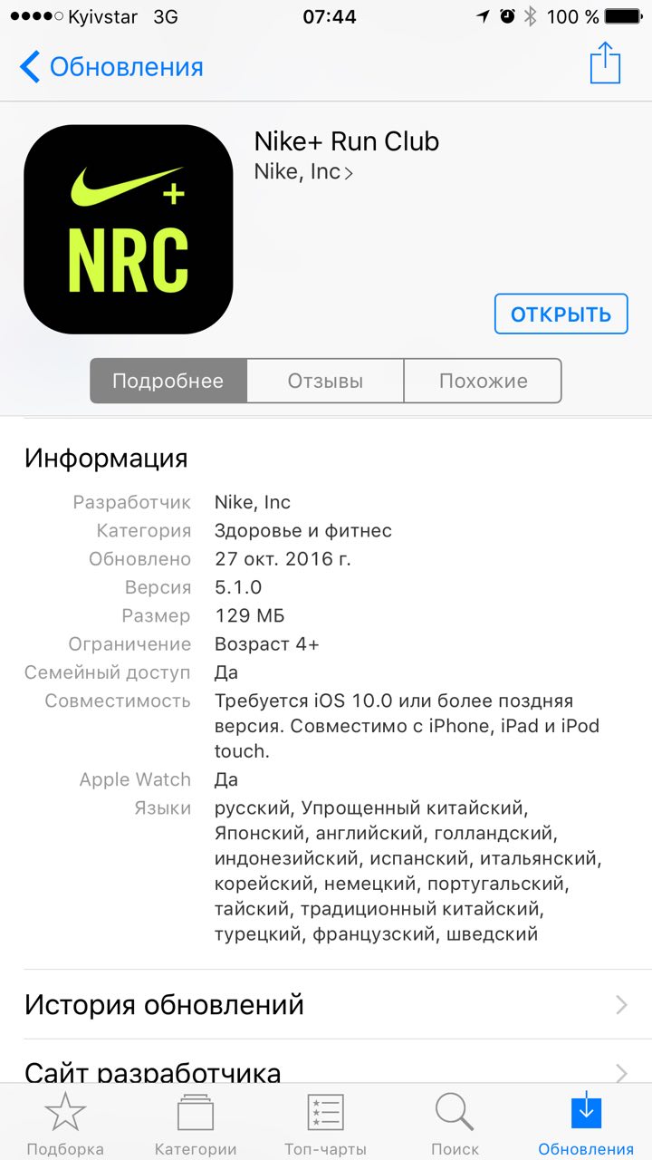 без выпуска апдейта самой прилы