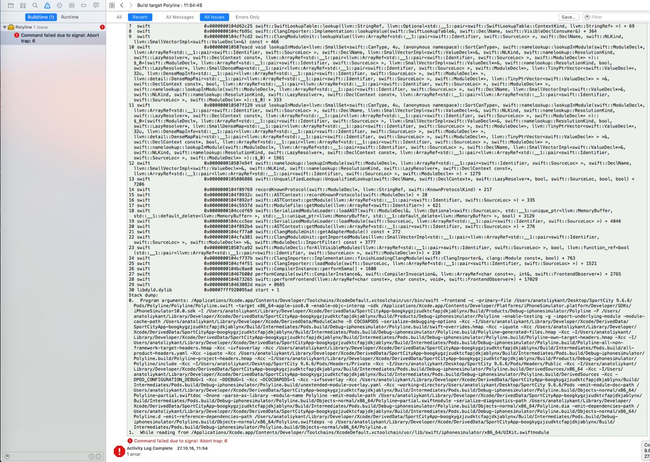 Получаю такую ошибку: Command failed due to signal: Abort trap: 6