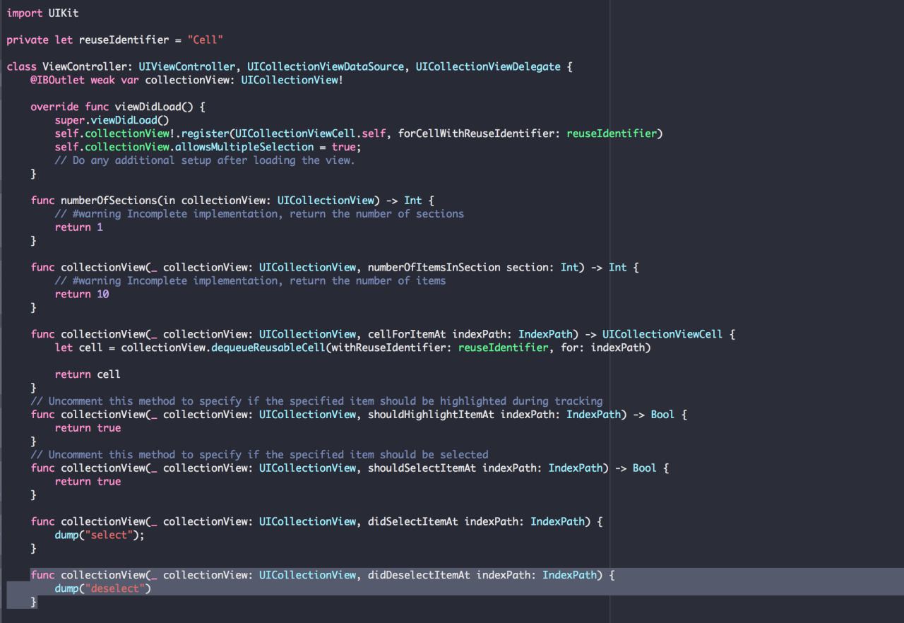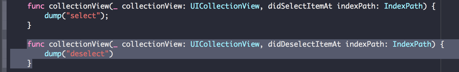 func collectionView(_ collectionView: UICollectionView, didDeselectItemAt indexPath: IndexPath) {