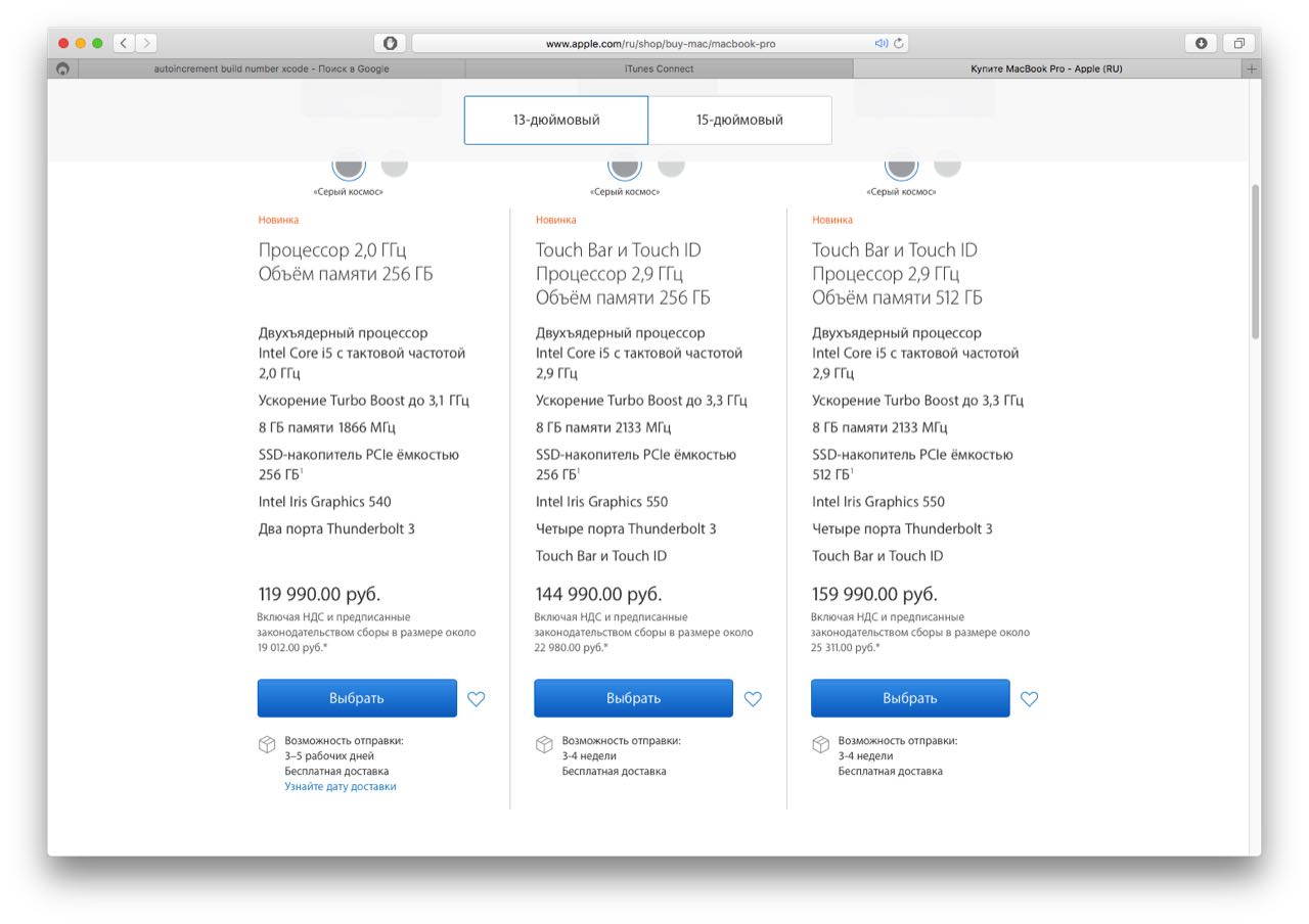 — 13-дюймовый MacBook Pro от 119 990 рублей
