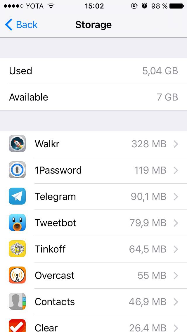 потом, iCloud Photo Library используется? Даже если выбрано оптмизировать хранилище, то все равно много место будет занимать фоточки, даже если в списке приложений написано что жрет только 100мб