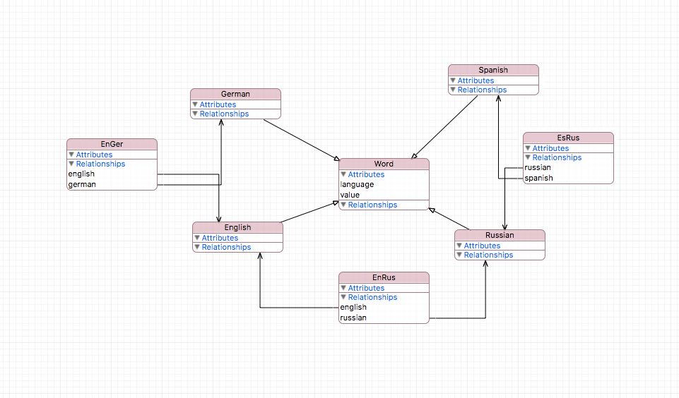 языки отдельная таблица идет, просто звязь слово-перевод вынесены в другую