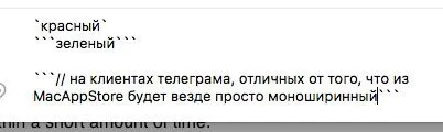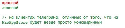 // на клиентах телеграма, отличных от того, что из MacAppStore будет везде просто моноширинный