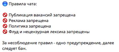 Кто не может держаться темы или корректно общаться, всегда может выйти. Мы очень ценим каждого участника, но ещё больше мы ценим общую атмосферу, на которую в последнее время увеличился поток жалоб. Надеюсь на ваше понимание и приношу свои извинения, если кого-то обидели сегодня блокировкой. Всем приятного общения, развития и продуктивной работы.