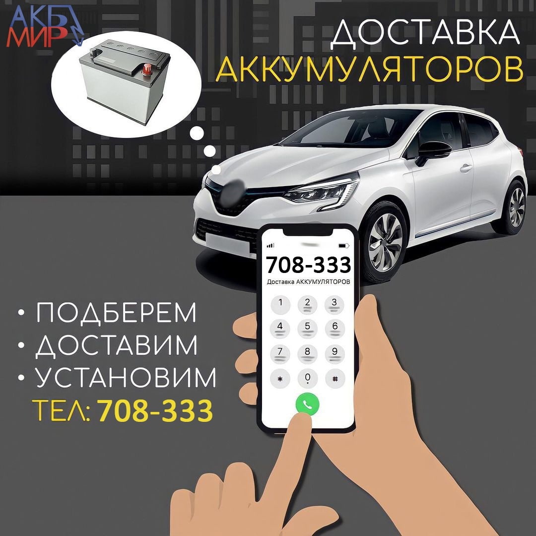Доставим новенький автомобильный аккумулятор в течение часа. Для заказа звоните по номеру📲 708-333