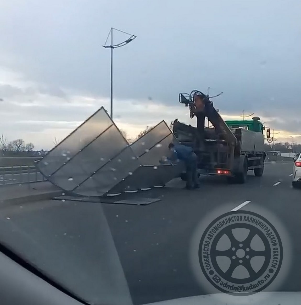 Под Гурьевском с манипулятора упал навес для остановки