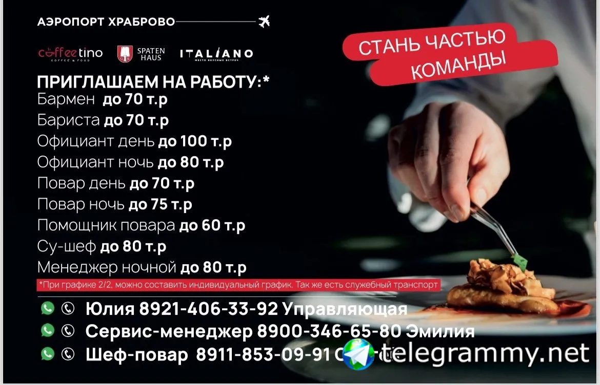 Рестораны в аэропорту Храброво приглашают сотрудников в свою команду✈️