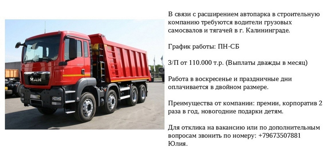 Нужны разнорабочие срочно мужчины и женщины 18+. Два объекта п. Космодемьянского и г. Гурьевск. Работаем на упаковке пищевой продукции в производственном помещении. Мед. книжку в процессе работы оформим за счёт организации. Оплата от 2400р до 3920р.(На карту ежедневно сразу в конце смены) Смены от 10 до 14 часов. График с 8:00 до 19:00 либо с 8:00 до 22:00(Час обед). Общий сбор в 7:00 на парковке дома советов(Шевченко 2), будет несколько микроавтобусов. С собой сменку(В цеху +8),кофту,штаны,ботинки либо галоши,либо сапоги,обед и паспорт. Читайте пожалуйста внимательно все условия и звоните записывайтесь. Очень большой объём работы. +79992558133, +79062160869.