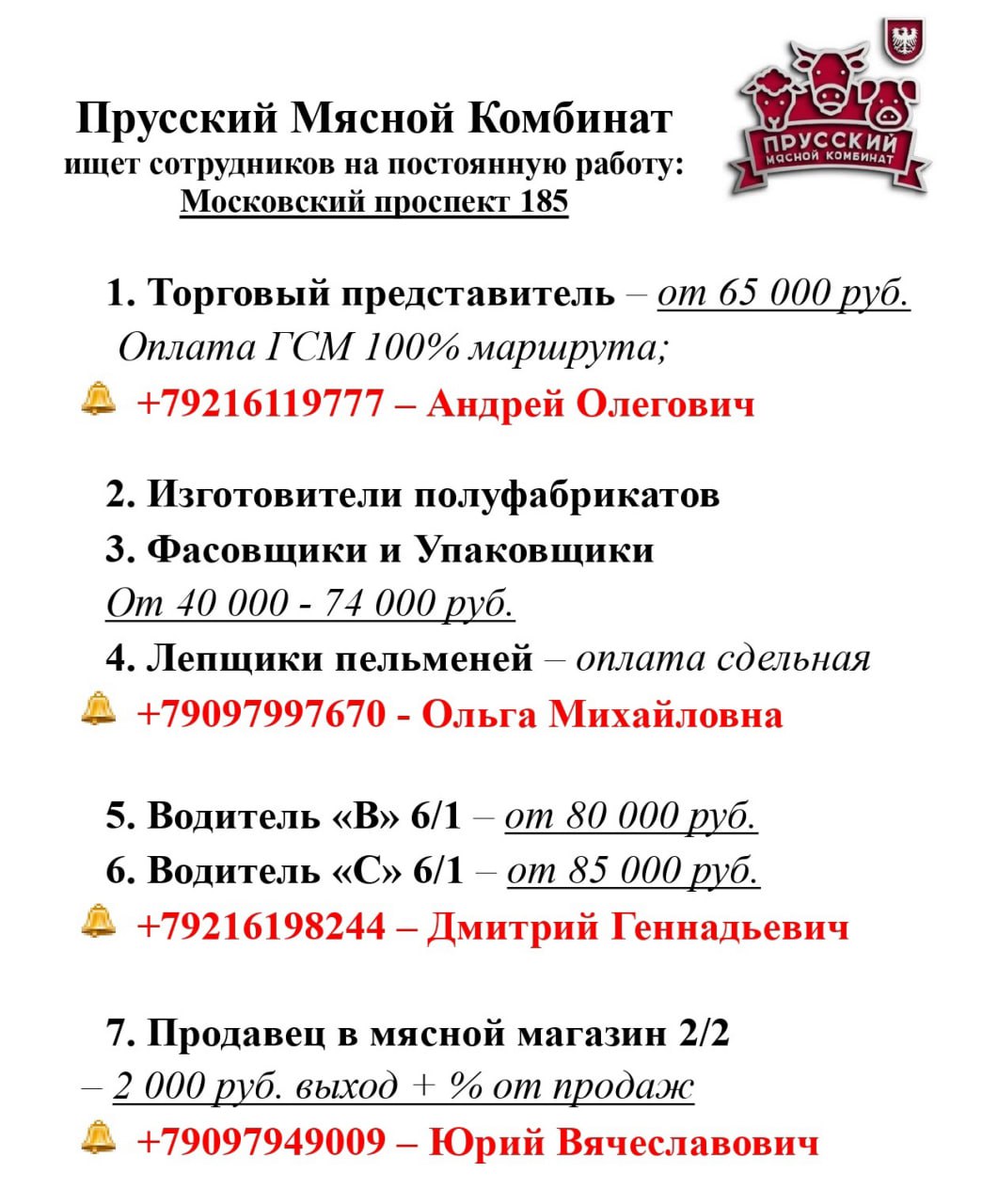 По всем вопросам о вакансиях звонить 89097877097