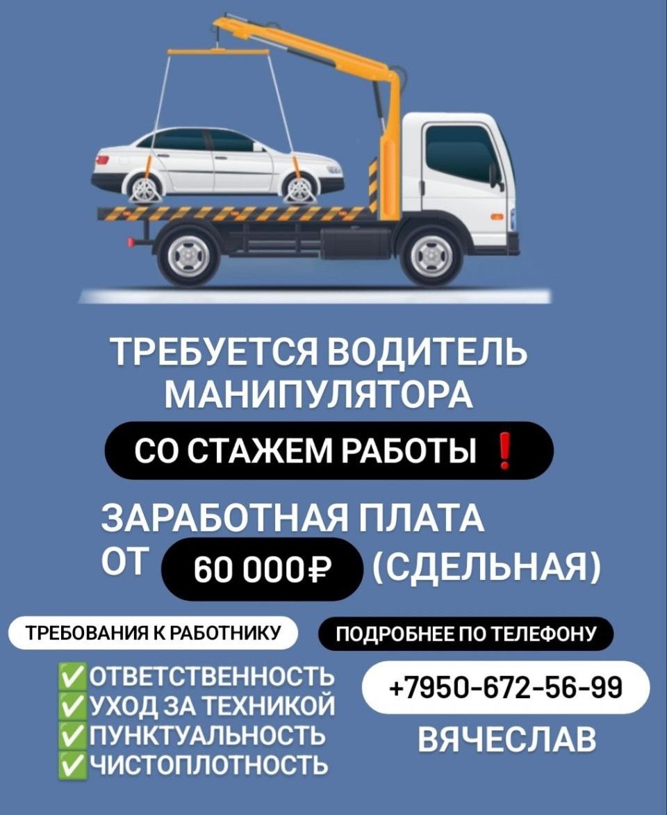 Требуется водитель манипулятора. ❗️Со стажем работы.