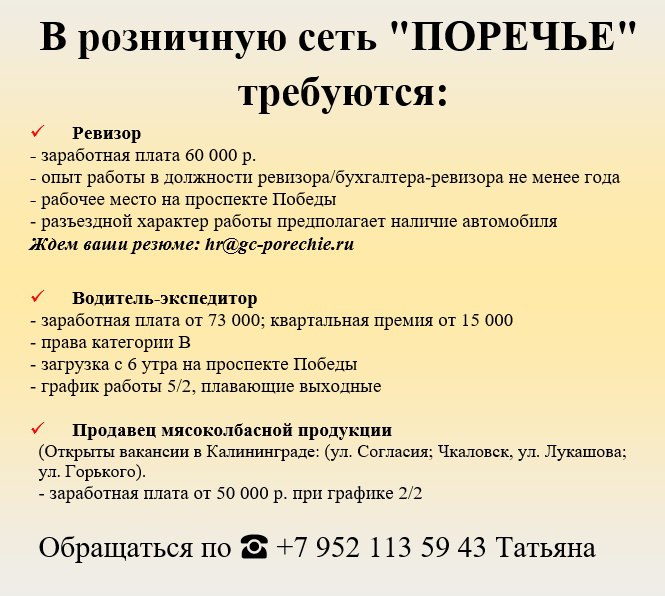 1. Приглашаем на постоянную работу в г.Калининград и область (г.Полесск, г.Гвардейск, г.Правдинск):