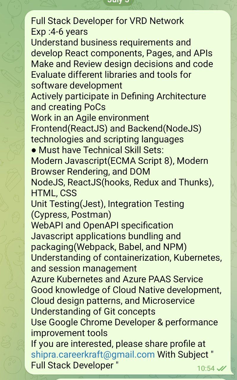 If you are interested, please share profile at shipra.careerkraft@gmail.com With Subject " Full Stack Developer "