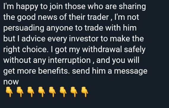 You have been the best,I always thank my friend so much for introducing me to you I invested $3500 and I earn $17500 in just 3 trading days wow...Now am dept free,I can’t wait to receive my second withdrawal