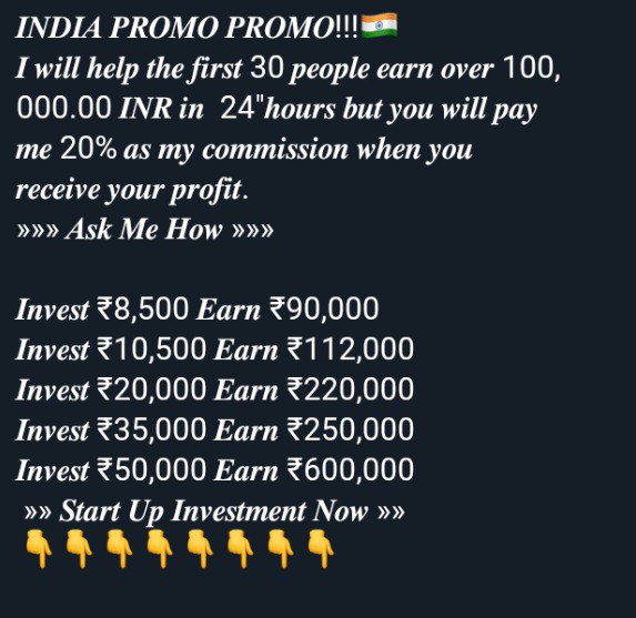 Are you from India and you have a Bitcoin account.🇨🇮🇨🇮𝐚𝐧𝐝 𝐚 𝐬𝐭𝐚𝐫𝐭 𝐮𝐩 𝐜𝐚𝐩𝐢𝐭𝐚𝐥 𝐨𝐟 $200 𝐲𝐨𝐮 𝐜𝐚𝐧 𝐦𝐚𝐤𝐞 𝐮𝐩 $25,000 𝐢𝐧 24hours