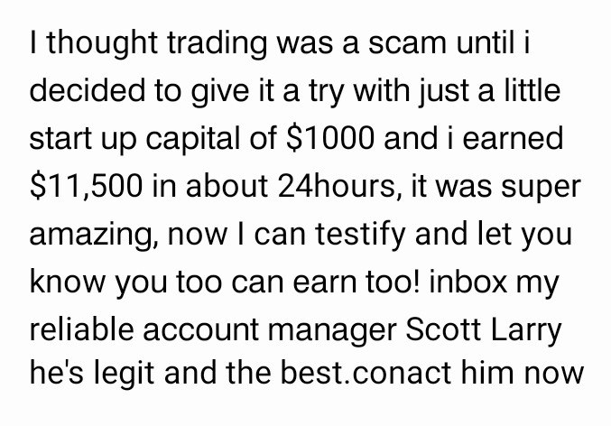 Be careful when investing. I know there are real Crypto traders out there and I've melted. Mr Victor coderio is a real and legitimate manager who will do anything to make a profit after trading. he did it for me. I don't have to worry about trading. he will put a smile on her face again if you need to. You can call him on @victor_coderio or join me with blue icon ⬇️⬇️📜📜📜earn_with_Trader_victorcoderio