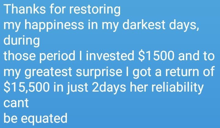 𝙼𝚞𝚌𝚑 𝚓𝚘𝚢 𝚒𝚗 𝚖𝚢 𝚑𝚎𝚊𝚛𝚝, 𝚓𝚞𝚜𝚝 𝚛𝚎𝚌𝚎𝚒𝚟𝚎𝚍 𝚖𝚢 𝚙𝚛𝚘𝚏𝚒𝚝 𝚘𝚏 $55,000 𝚒 𝚌𝚊𝚗 𝚗𝚘𝚠 𝚌𝚕𝚎𝚊𝚛 𝚞𝚙 𝚊𝚕𝚕 𝚖𝚢 𝚋𝚒𝚕𝚕𝚜. 𝚃𝚑𝚊𝚗𝚔 𝚢𝚘𝚞 𝚊𝚗𝚍 𝙶𝚘𝚍 𝚋𝚕𝚎𝚜𝚜 𝚢𝚘𝚞 𝚊𝚗𝚍 𝚢𝚘𝚞𝚛 𝚏𝚊𝚖𝚒𝚕𝚢