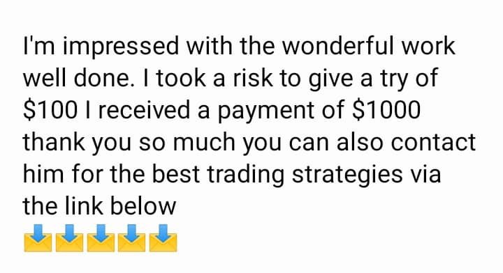 turned my $100 to $1,000 he's the best. Thank you so much for doing a great job, I'm currently enjoying my payout contact him via the link
