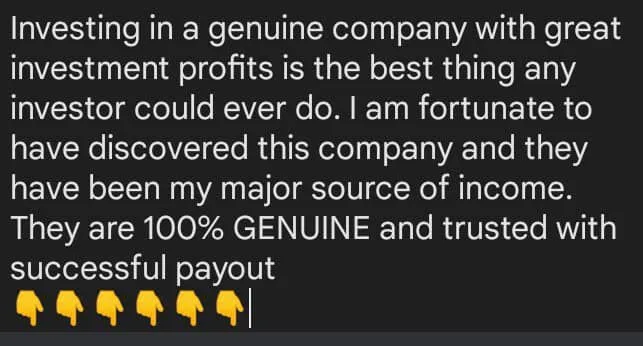 I don't  know where I would have been today but thank God that I came in contact with your trading platform. thanks for restoring my happiness