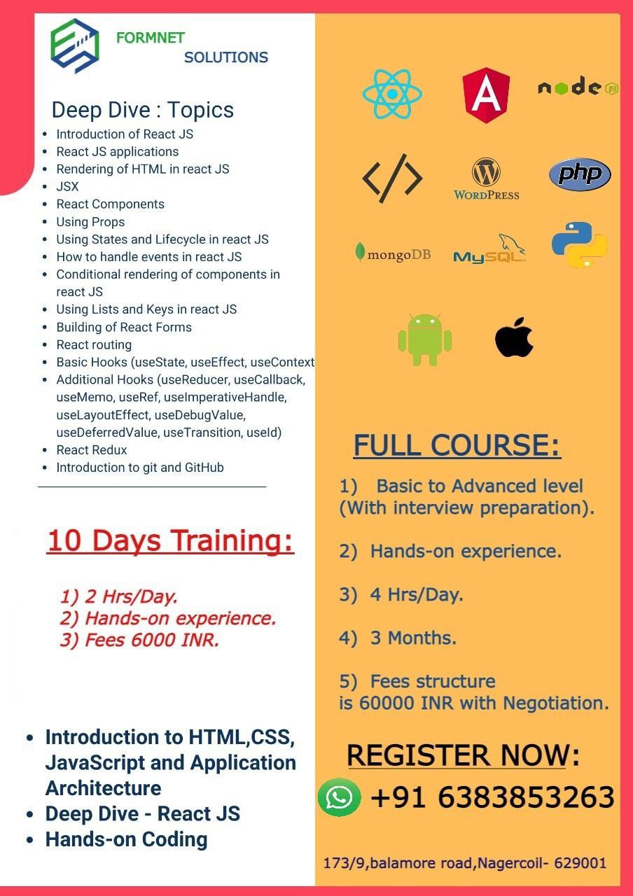 Job Title: Full Stack Developer (.Net + ReactJS)