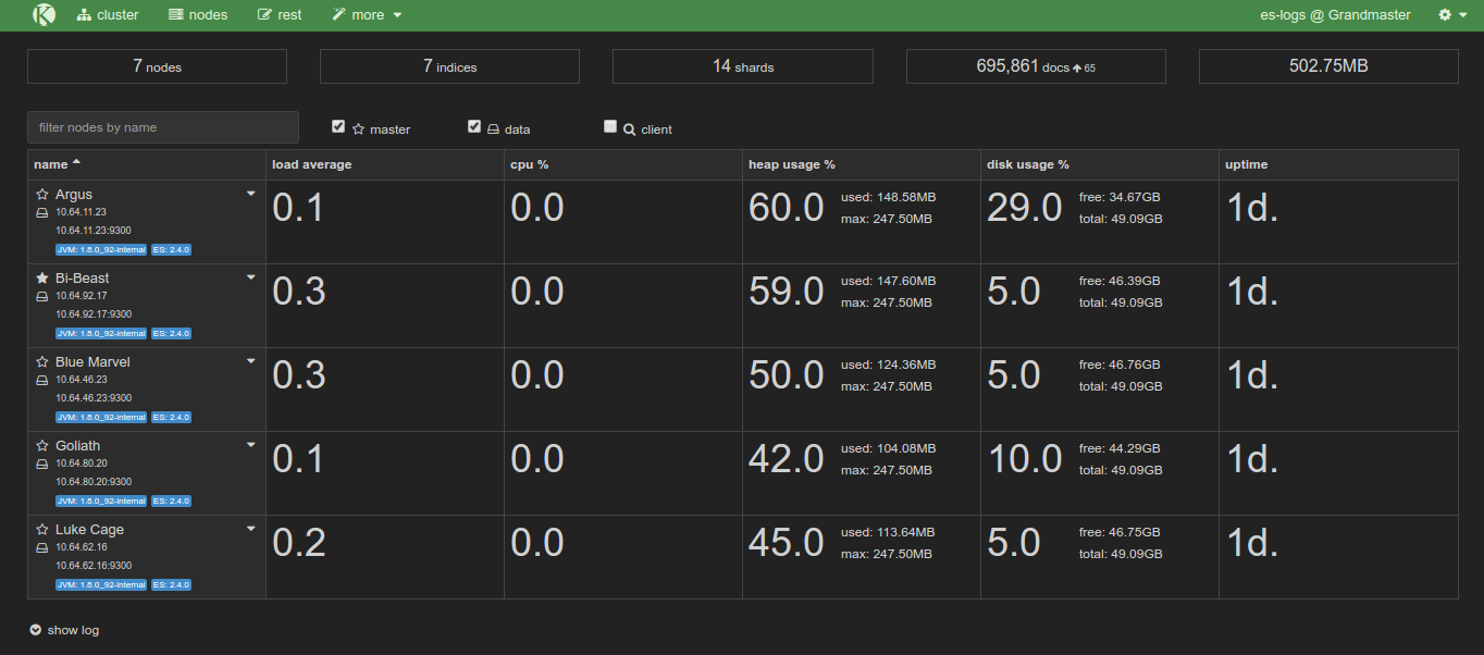 И логи и мониторинг ресурсов в одной kibana. Интересно, умеет ли он alert'ы высылать