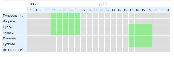 на фронт есть прикольные библиотеки где можно прям по часам выбрать для каждого дня недели, если кто знает в яндекс директе такая же тема
