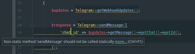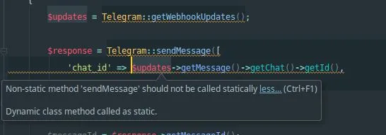 то что phpstorm мне предлагает импортировать это use Telegram\Bot\Laravel\Facades\Telegram;