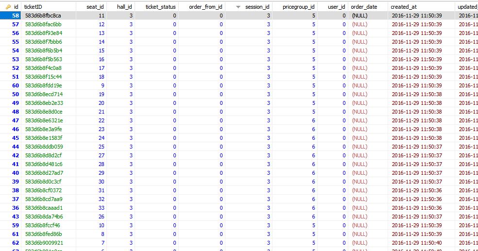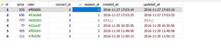 select DISTINCT price_group_id, color, session_id, price, seat_id