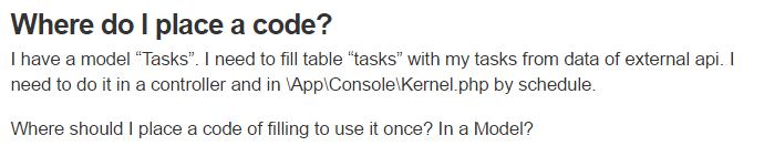 Ник ответил, что в контроллер это дело нужно пихать. Но правильно ли потом обращаться к методу http контроллера из \App\Console\Kernel.php ?