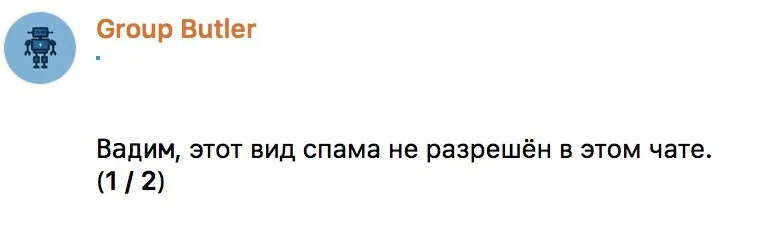 Вадим, этот вид спама не разрешён в этом чате. (1 / 2)