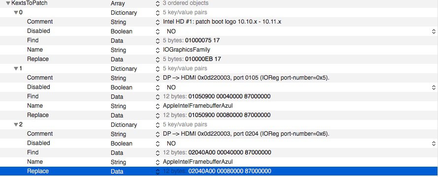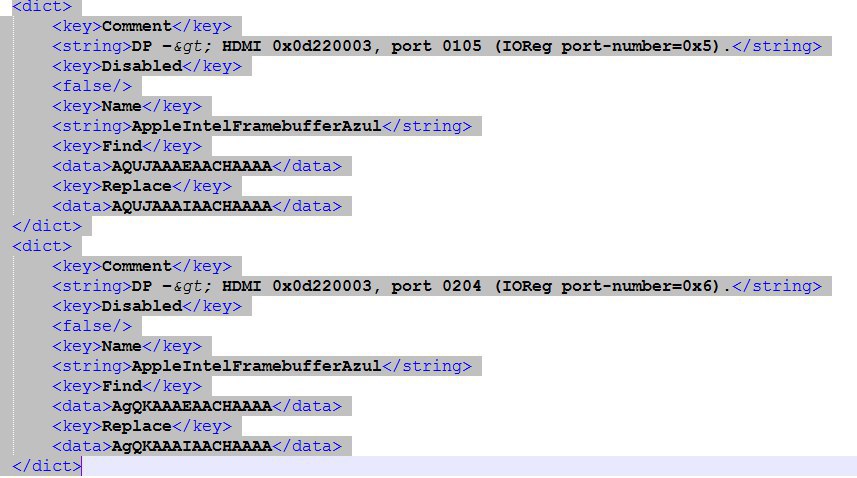 Если же вы используете другую платформу, то вы можете взять нужные патчи для нужного порта в файле HDMI Azul patch.plist.