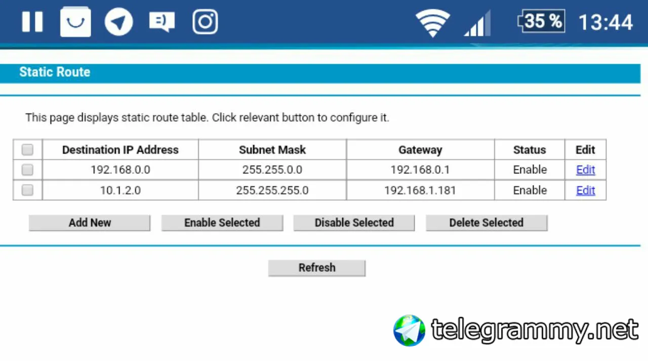 В модеме я прописал маршрут