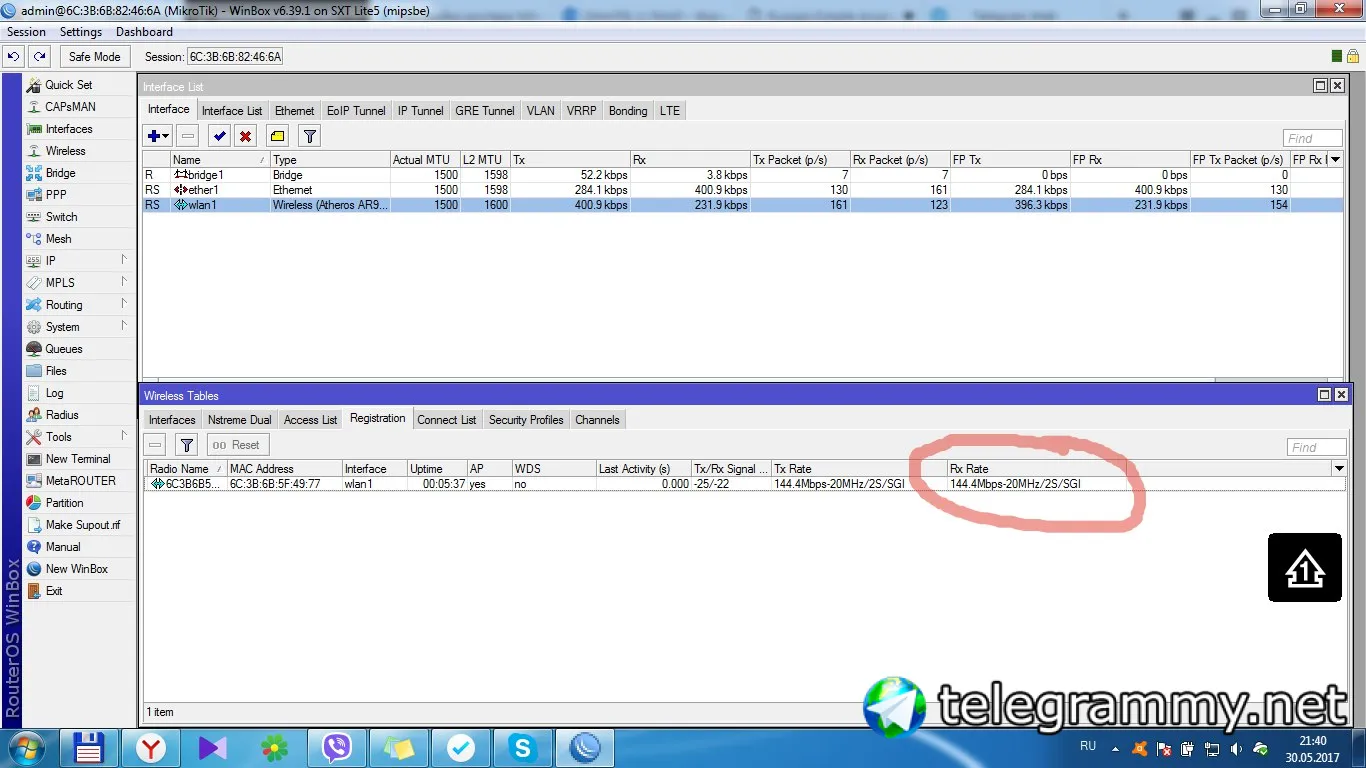 Единственное смущает что скорость RX на SXT скачет каждые 2-3 секунды то как на скриншоте то 6Мбит показывает.
