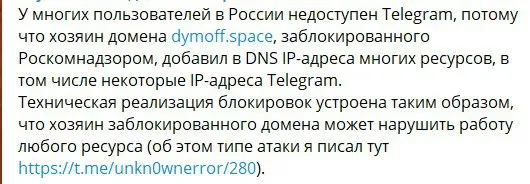 Коллеги! Сегодня ночью столкнулся с неработой телеграма через своего оператора домашнего интернета