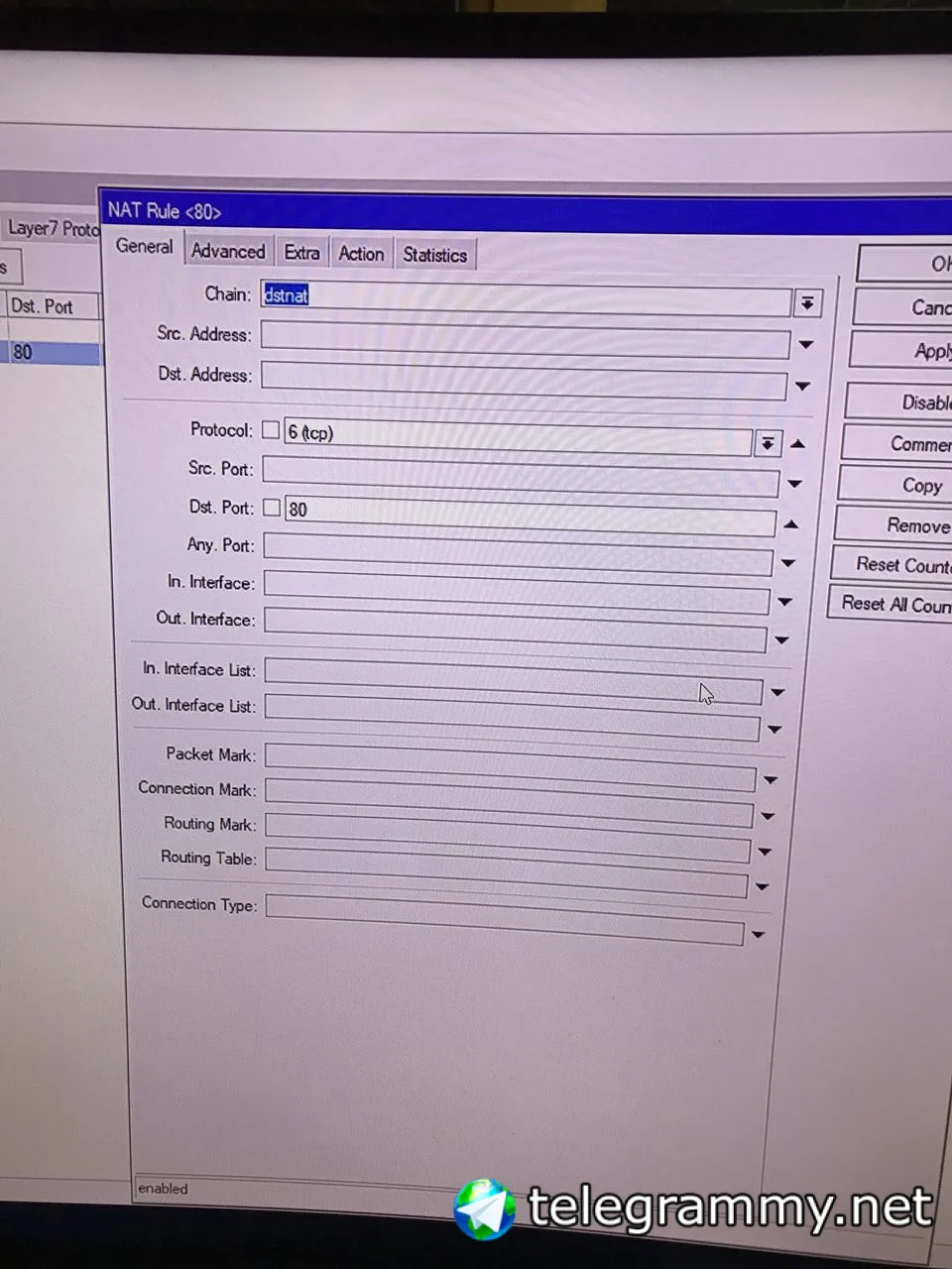 просто оставьте протокол порт и в экшне dst-nat на ip и порт