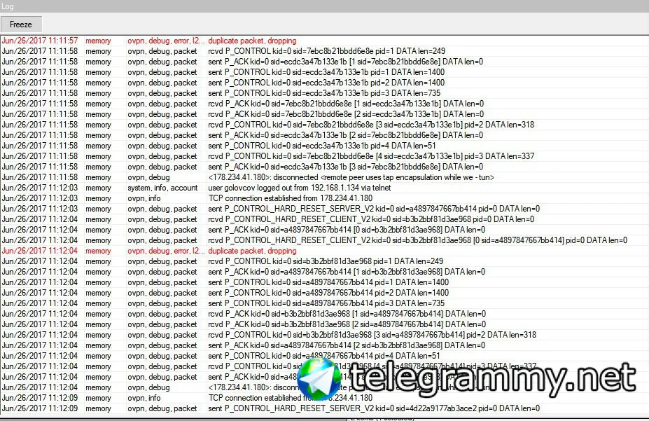 народ, всем привет, в логах каждые 5 сек ошибка "duplicate packet dropping" ovpn,debug,error, не могу понять в чем дело, как вычислить ошибку можно?