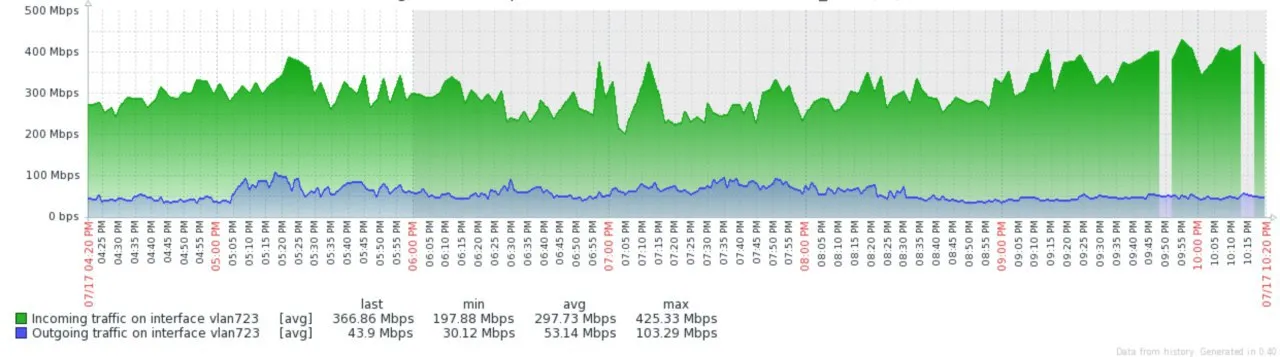 And there you have it! In a maximum performance setup connecting two hAP AC’s together their maximum transfer rate is about 500Mbit because of CPU limitations.