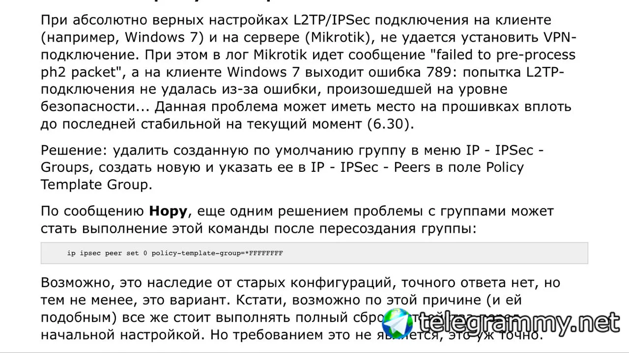 Потом просто галочку поставь в настройках сервера l2tp и пароль сразу будут работать и на iOS и на windows (ребутни на всякий який, с аппаратной поддержкой что бы глюков не было) на rb3011 у меня и манглы начинали работать только после ребута день убил а простой ребут все решил